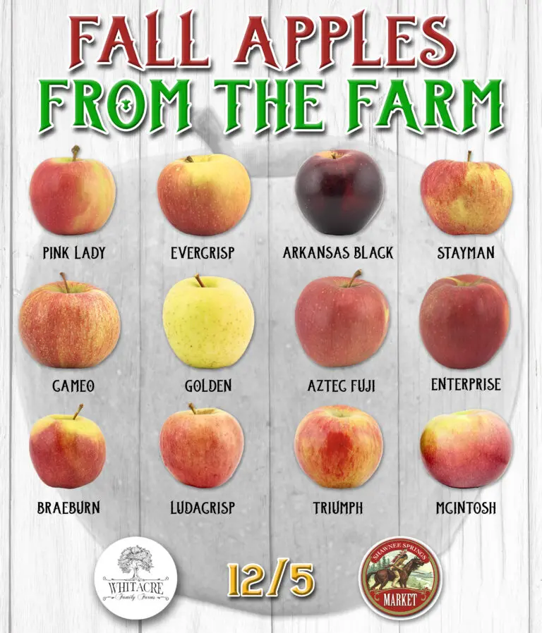 Pink Lady, Evercrisp, Arkansas Black, Enterprise, Stayman, Aztec Fuji, Cameo, Golden, Ludacrisp, Braeburn, Triumph & McIntosh