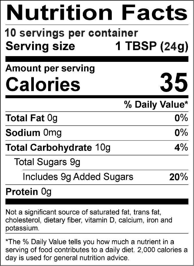 Ingredients: Fruit blend (apples, red raspberries, blackberries, elderberry concentrate), sugar, pectin, and citric acid.
