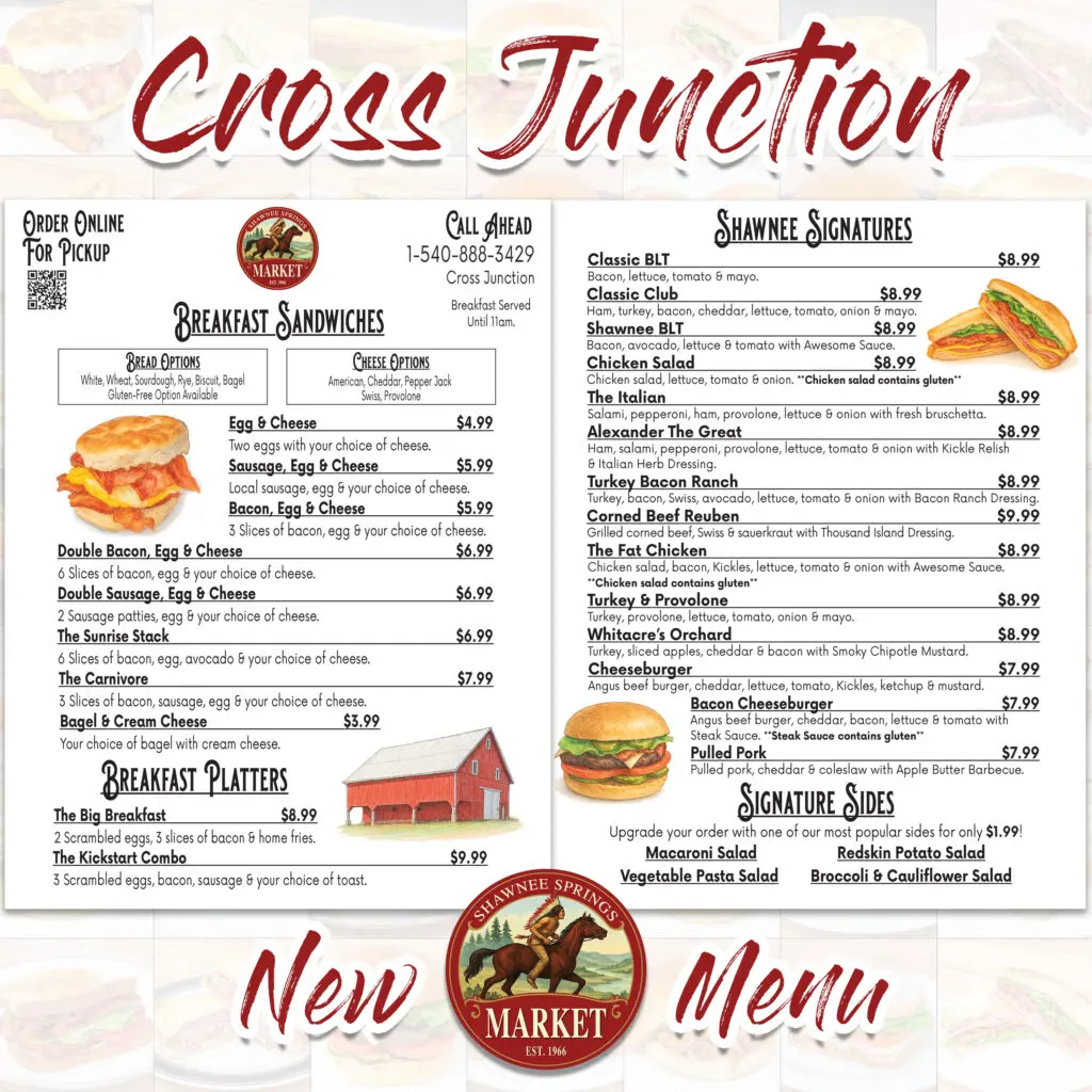 Our Markets 2026 menus is here! Each Shawnee Springs Market offers its own slightly unique lineup — packed with your fan favorites, exciting new breakfast items, and our Signature Sides, now available.